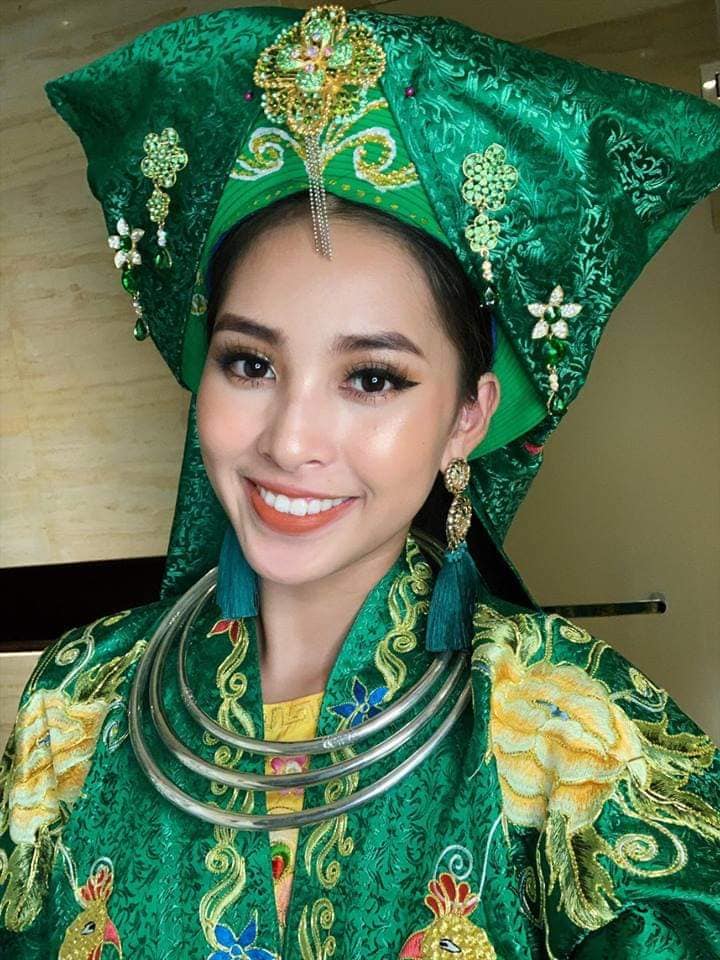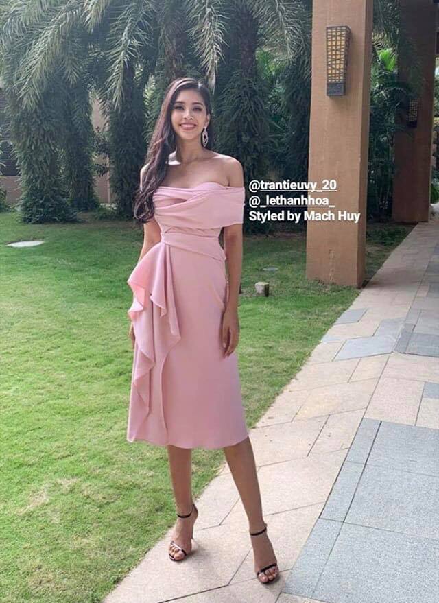 Đi kèm với bộ trang phục, Tiểu Vy phát huy mái tóc suôn dài ở mọi lúc mọi nơi. Được biết Tiểu Vy diện trang phục này cho phần quay profile video.