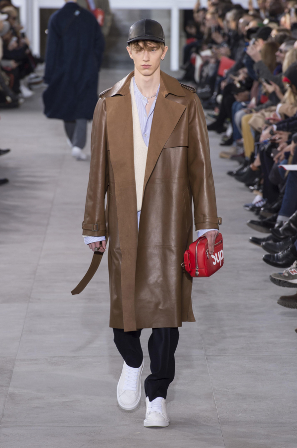 Không dừng lại ở đó, Giám đốc sáng tạo Kim Jones đã khiến giới mộ điệu vô cùng háo hức vì ông đã tung ra màn kết hợp siêu đỉnh giữa thương hiệu Louis Vuitton và Supreme. Hình ảnh các người mẫu diện trang phục, cùng những chiếc túi xách, vali hay thậm chí là khăn choàng cổ in logo lồng ghép giữa 2 thương hiệu với gam màu đỏ nổi bật cũng được thể hiện đúng tinh thần tự do, trẻ trung trong BST Thu Đông 2017 lần này.