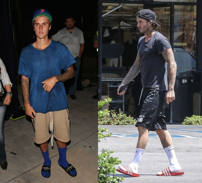 Đi dép lê đã đủ luộm thuộm, lại còn xỏ thêm đôi tất cao cổ thì quả thật là hơi khó hiểu. Nhưng có hề gì đâu khi các sao hạng A như David Beckham, Justin Bieber đều đang chứng minh, việc đi tất rồi xỏ xép lê đã được nâng tầm lên thành thời trang dạo phố.