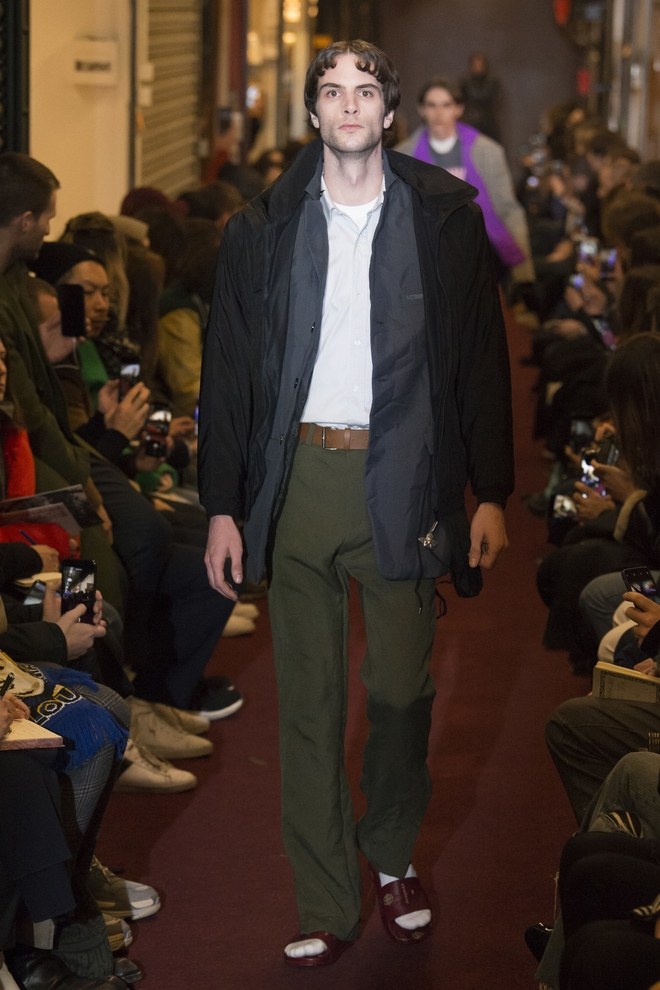 Trong bộ sưu tập thời trang mùa thu 2018 của Vetements, mẫu nam đã tự tin sải bước với đôi dép lê kèm tất. Khi “ông lớn” Vetements đã ra tay thì chắc hẳn sự kết hợp này không thể nào là tầm thường được.