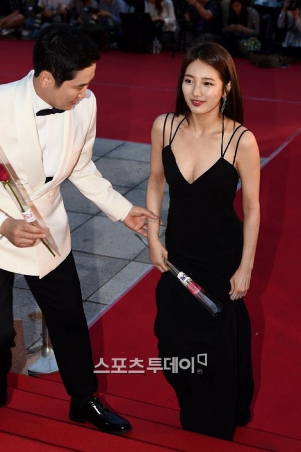 Một trong lần hở bạo nhất của Suzy là khi cô xuất hiện tại Giải thưởng nghệ thuật Baeksang 2016 trong kiểu váy đen xẻ sâu ngực