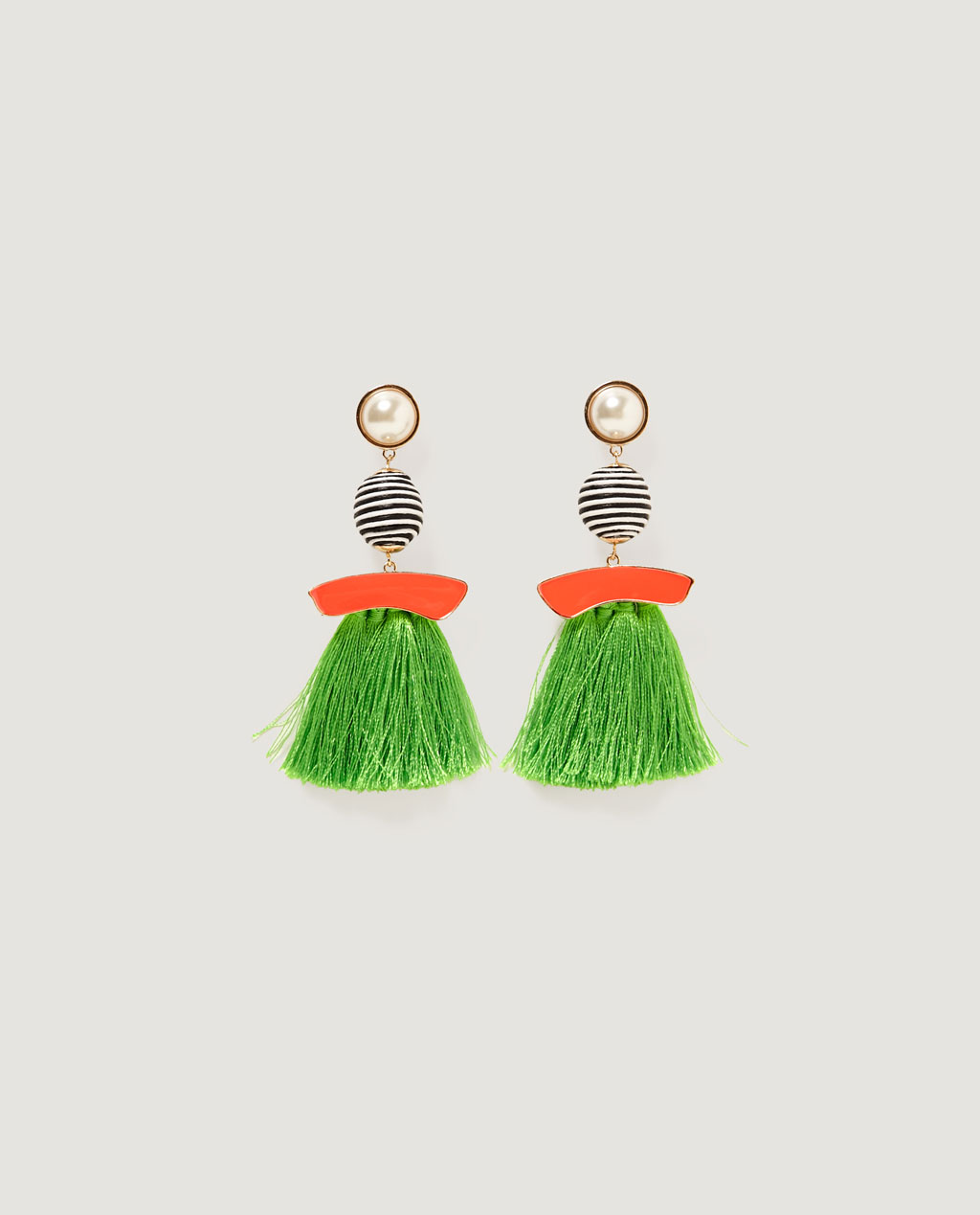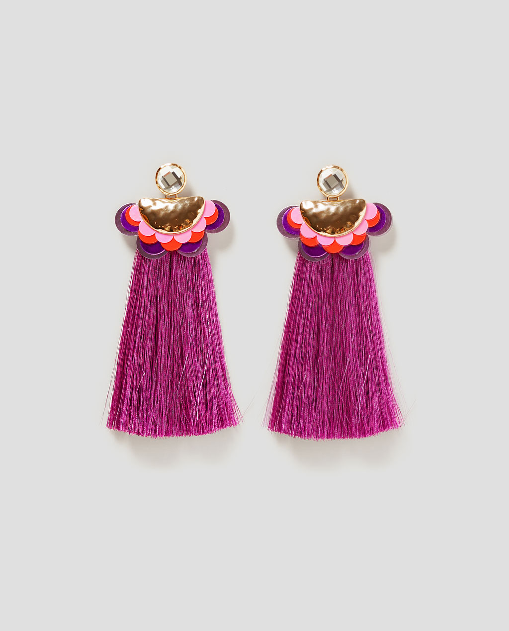 Chất liệu tạo nên những đôi hoa tai tua rua của hãng thời trang bình dân Zara khá đa dạng, khi được đính cườm, đá quý, lúc chỉ là những sợi kim loại mỏng được kết chùm lại với nhau. Với những ưu điểm cùng dấu ấn không thể chối từ, 8 mẫu hoa tai dưới đây mang đậm nét phóng khoáng và được coi là nét chấm phá thú vị. Loạt phụ kiện xinh xắn mang màu sắc rực rỡ từ cam, hồng, xanh, đỏ,… với giá cả phải chăng chỉ từ 399.000 VNĐ đến 599.000 VNĐ có làm tim bạn “rung rinh”?