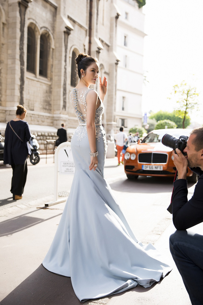 Bà Pascale Cadaux - giám đốc bán hàng của Chanel - cùng trợ lý đã bay từ Pháp đến Việt Nam để giúp Lý Nhã Kỳ thử và sửa váy. Bên cạnh đó cô còn diện bộ trang sức 12 tỷ đồng, một thiết kế đến từ người Italy nổi tiếng Paolo Piovan.
