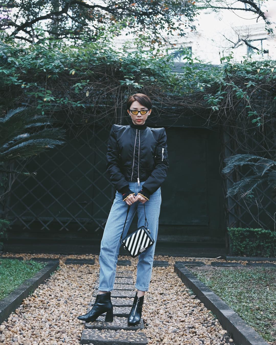 Tóc Tiên cập nhật liên tục và đều đặn các xu hướng thời trang trong những ngày Tết. Vào những ngày cuối Tết, cô chọn outfit cộp mác hàng hiệu mạnh mẽ, cá tính với áo da và ankle bốt.