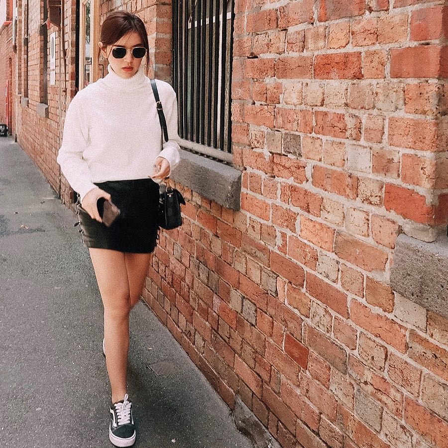 Trúc Anh The Face cũng sử dụng tông màu trung tính, trắng đen trên outfit xuống phố của mình.