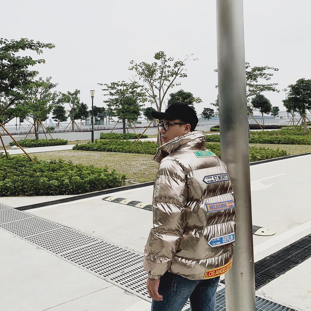Hoàng Ku xua tan giá lạng ngày đầu đông với chiếc áo bomber ánh bạc, tạo thành điểm nhấn cho vẻ ngoài của mình.