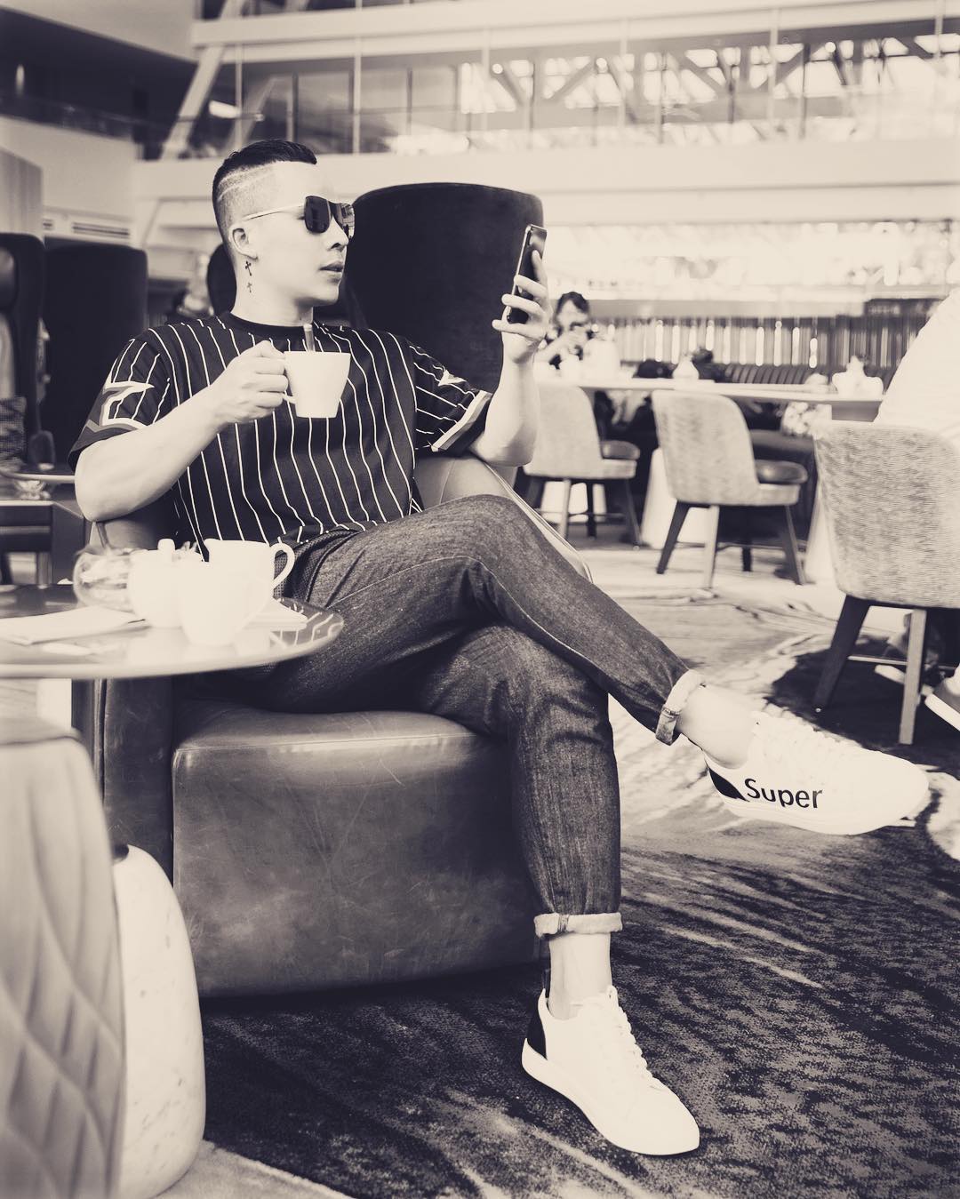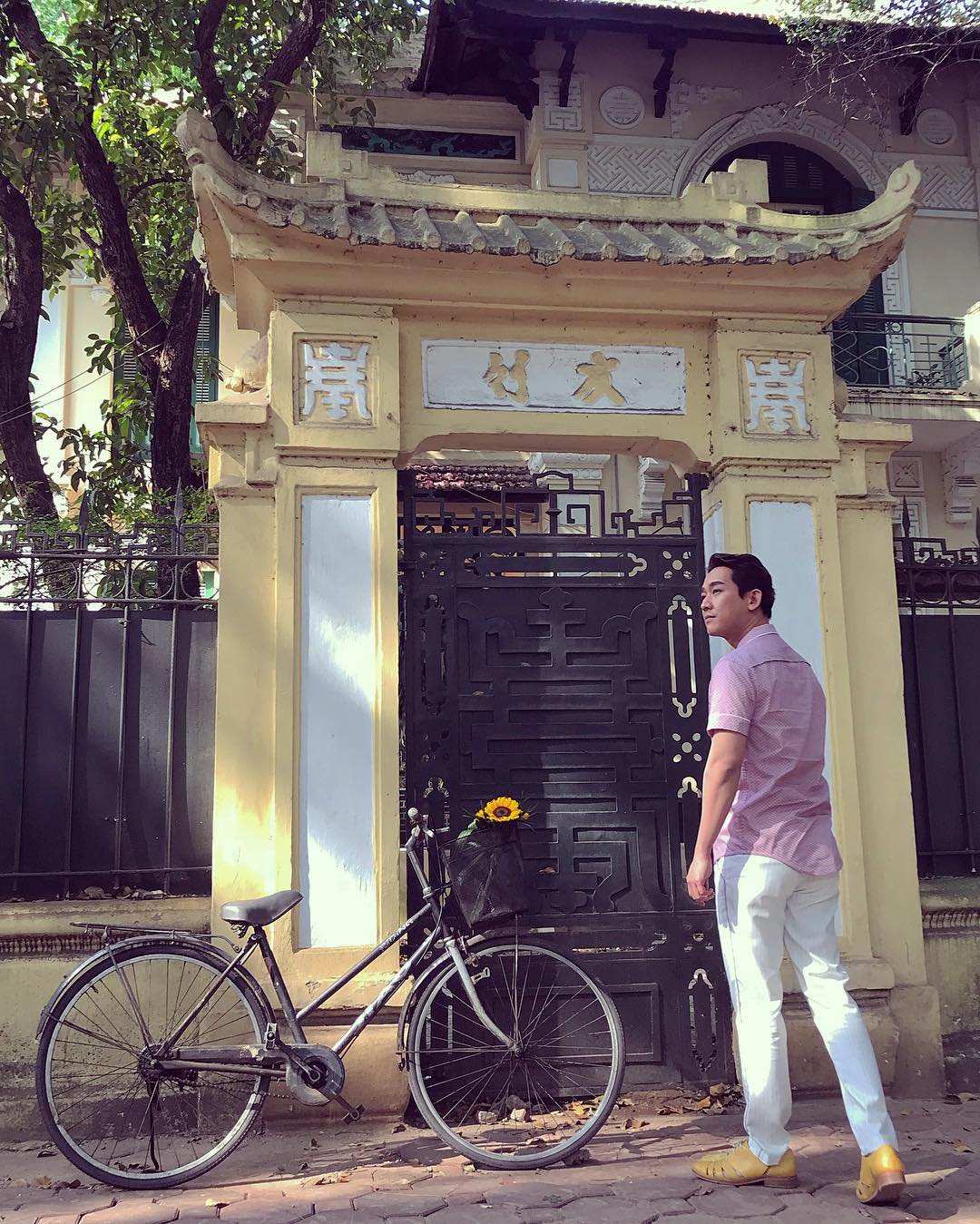 Áo thun sọc cùng quần jeans ôm là cách mà ông trùm chân dài Vũ Khắc Tiệp tạo nên vẻ ngoài lịch lãm, phong độ cho bản thân.