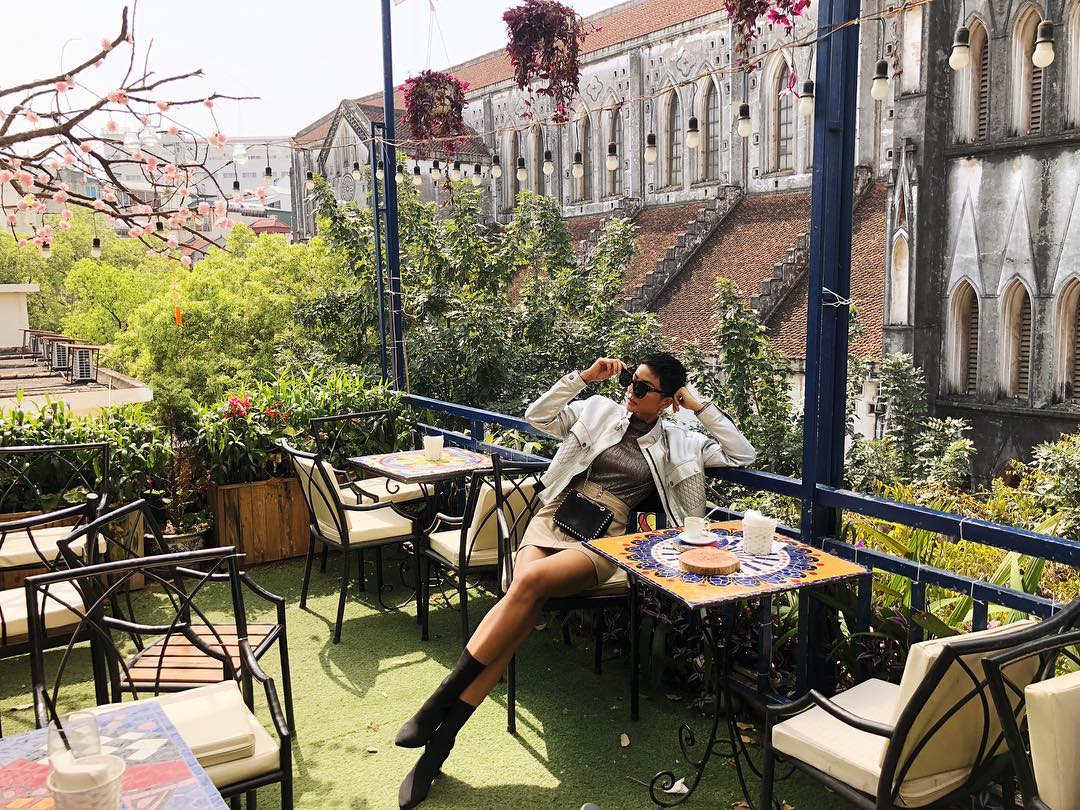 Đương kim Hoa hậu Hoàn vũ 2017 H'Hen Niê cá tính với set đồ gồm áo khoác da và chân váy. Các món phụ kiện như boots cao quá gối, kính mắt đen mix cùng cũng được cho là hoàn toàn phù hợp với tổng thể.