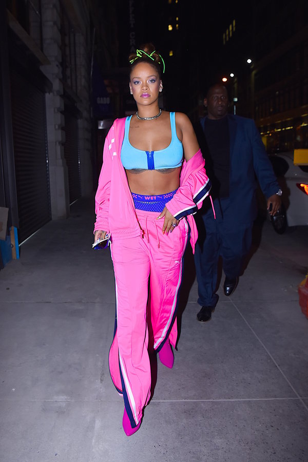 Vốn là tín đồ “mê mệt” mỏi thể loại sắc hồng nên Rihanna tất nhiên phải chạy ngay theo xu hướng với tín đồ thời trang thế giới. Phong cách thể thao khỏe khoắn kết hợp sự điệu đà của gam hot pink theo bạn có phải là sự lựa chọn hoàn hảo?