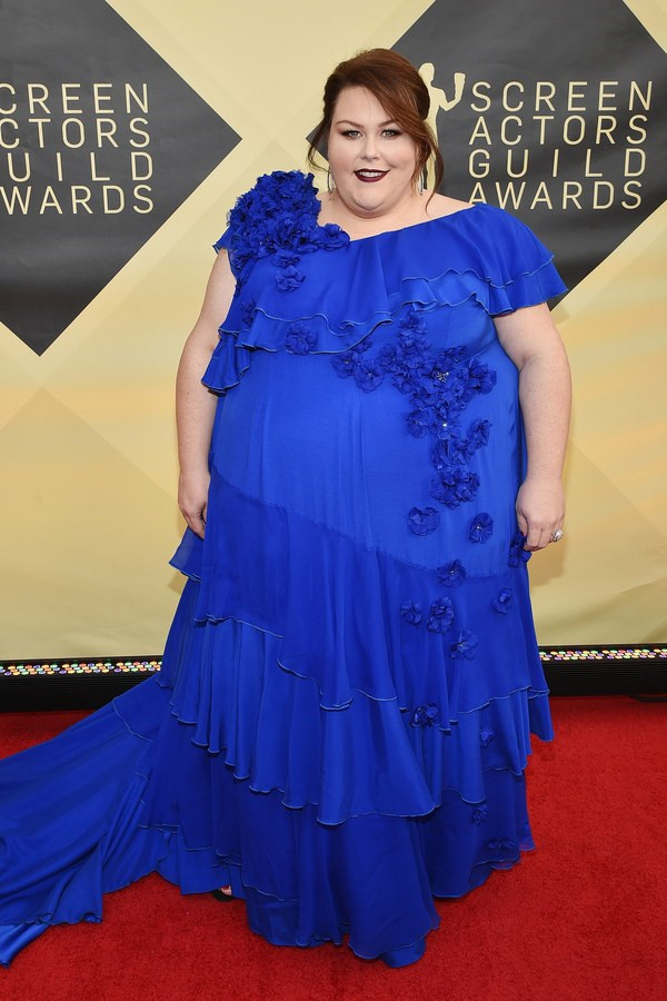 Chrissy Metz chọn mẫu váy có chất liệu vải đã lỗi thời, những điểm đính hoa cũng bị cho rằng kém tinh tế.