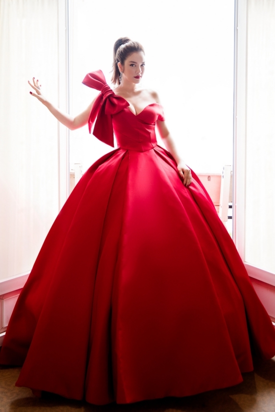 Hari Won sau khi giảm cân đã có thể chinh phục được những mẫu thiết kế kén dáng. Trong mẫu váy đỏ cầu kỳ này, bà xã Trấn Thành khoe được vòng 1 và đôi chân dài thon thả rất hấp dẫn nhưng không hề bị phô.