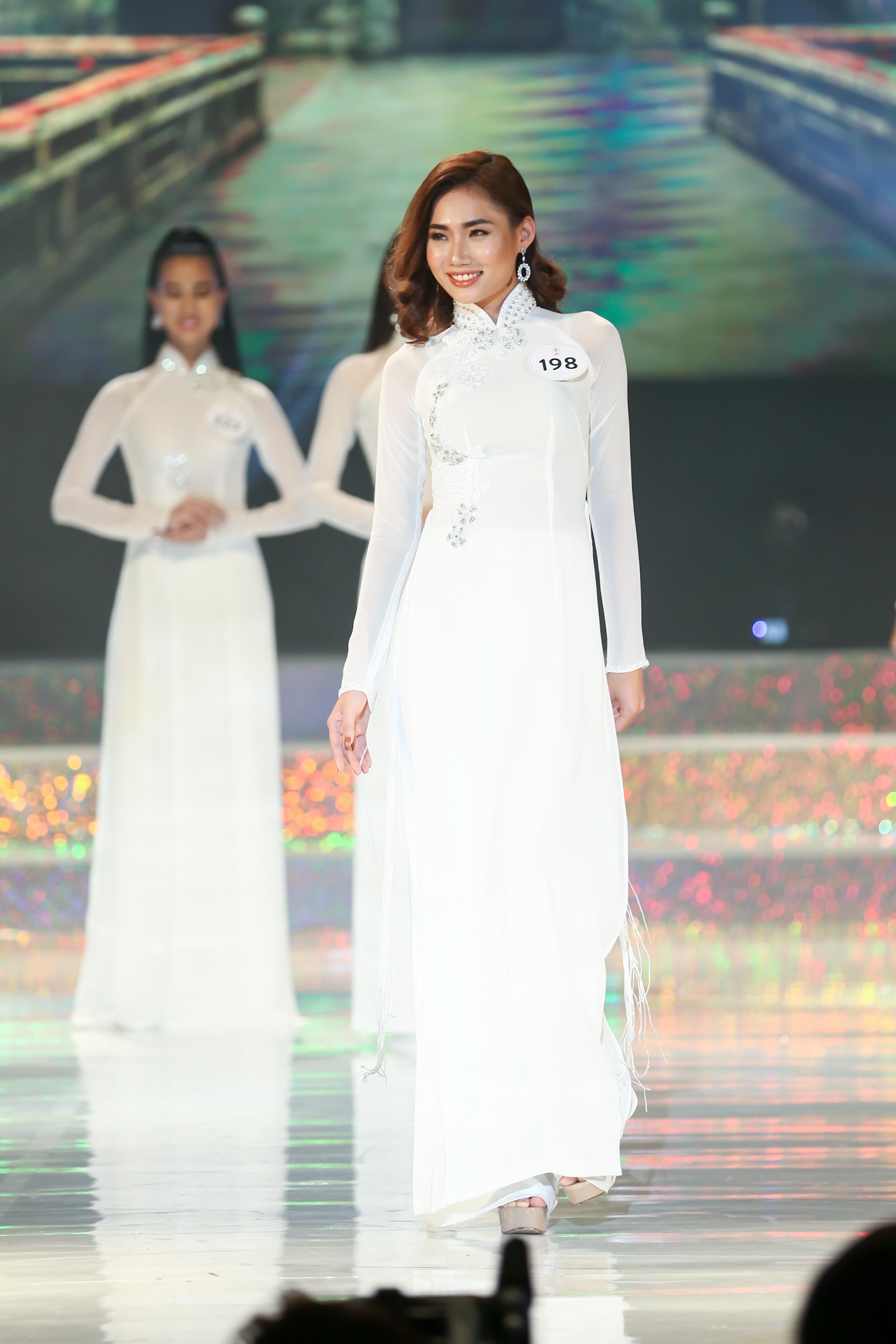 Trong những tà áo dài đầy màu sắc từ thương hiệu Kinzu do hai nhà thiết kế trẻ Phạm Sĩ Toàn và Huỳnh Bảo Toàn đảm nhận, 15 ứng viên “gây thương nhớ” cho người đối diện khi khoe đường cong cơ thể quyến rũ, cùng nét đằm thắm, dịu dàng của người phụ nữ Việt Nam.