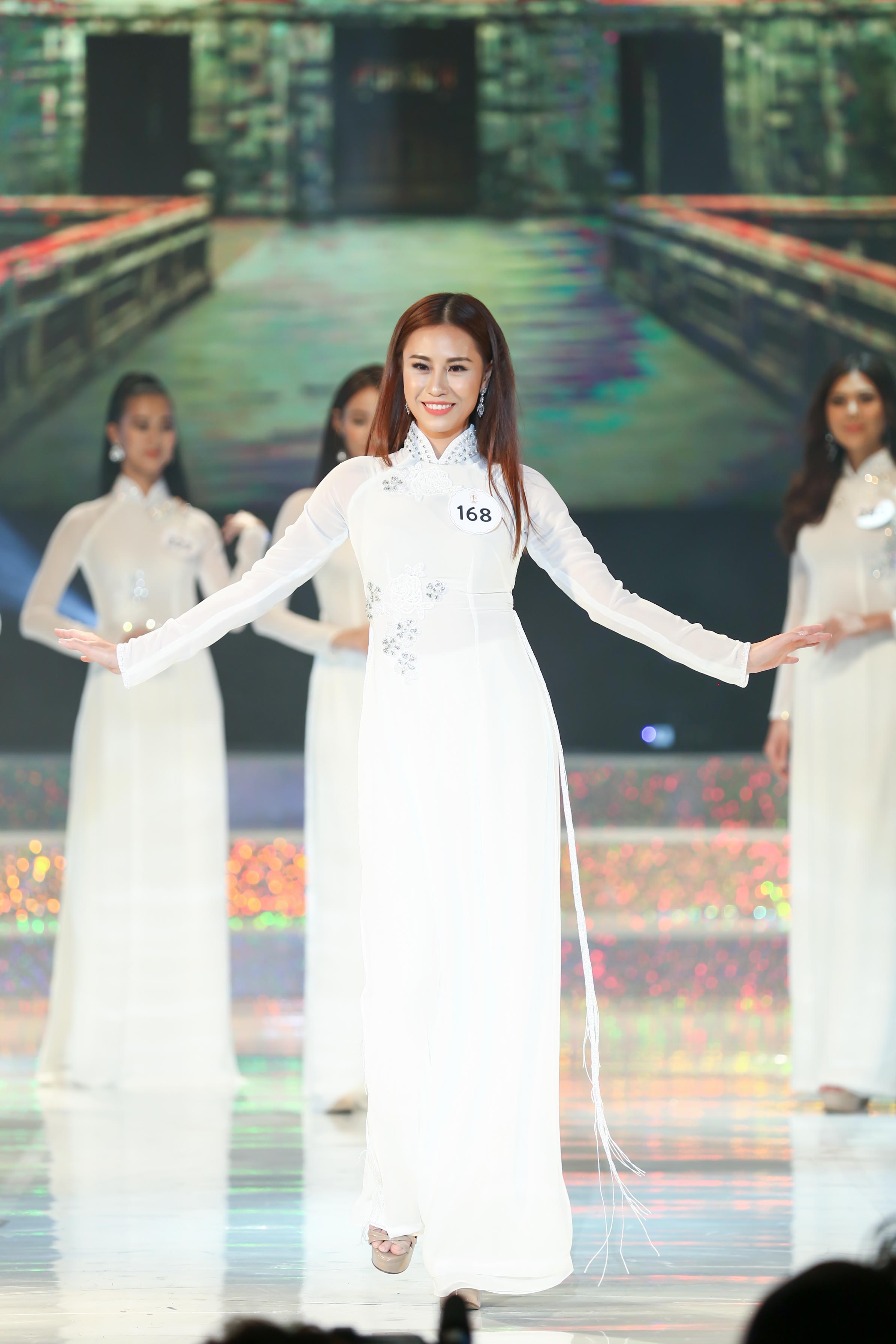 Áo dài Kinzu giúp các ứng viên tự tin khoe dáng chuẩn trong đêm chung kết.