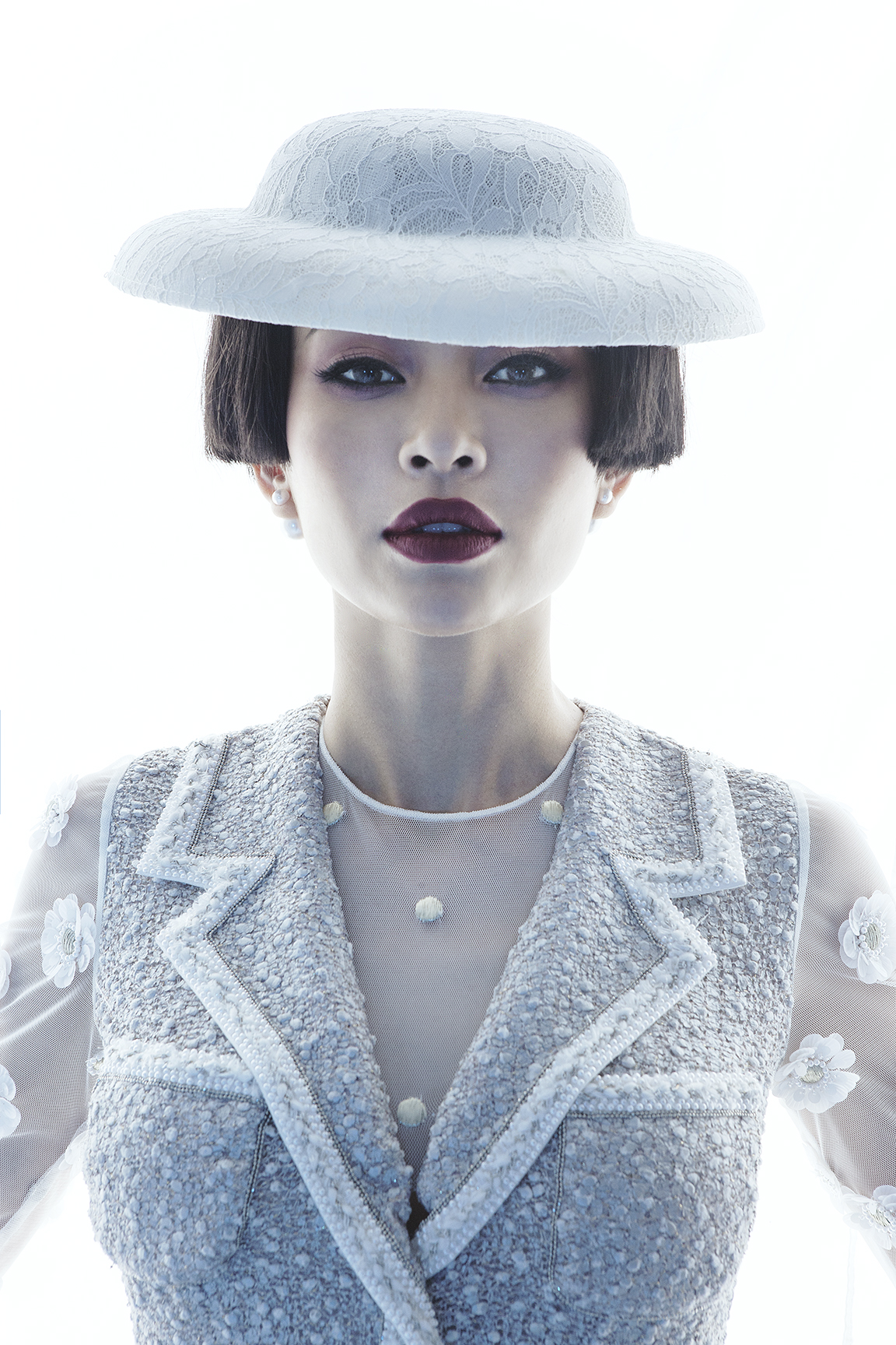 Những chiếc mũ nhỏ nhắn được trang trí với hoa kết bằng ren và đính ngọc trai.