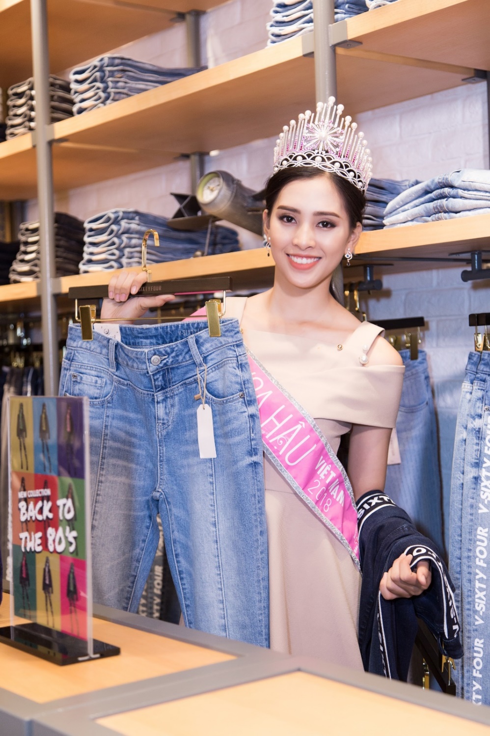 Á hậu 1 Phương Nga - cô gái thu hút với nụ cười tỏa nắng đã rất bất ngờ vì đây là 1 thương hiệu thời trang của Việt Nam, Phương Nga chia sẻ cô cảm nhận được tâm huyết trong cách bày trí cũng như là các sản phẩm hiện tại đang có tại cửa hàng Flagship này. Cô hy vọng các bạn trẻ sẽ dành sự quan tâm và ủng hộ đến các thương hiệu Việt chất lượng như các sản phẩm jeans và denim từ thương hiệu V-SIXTYFOUR.