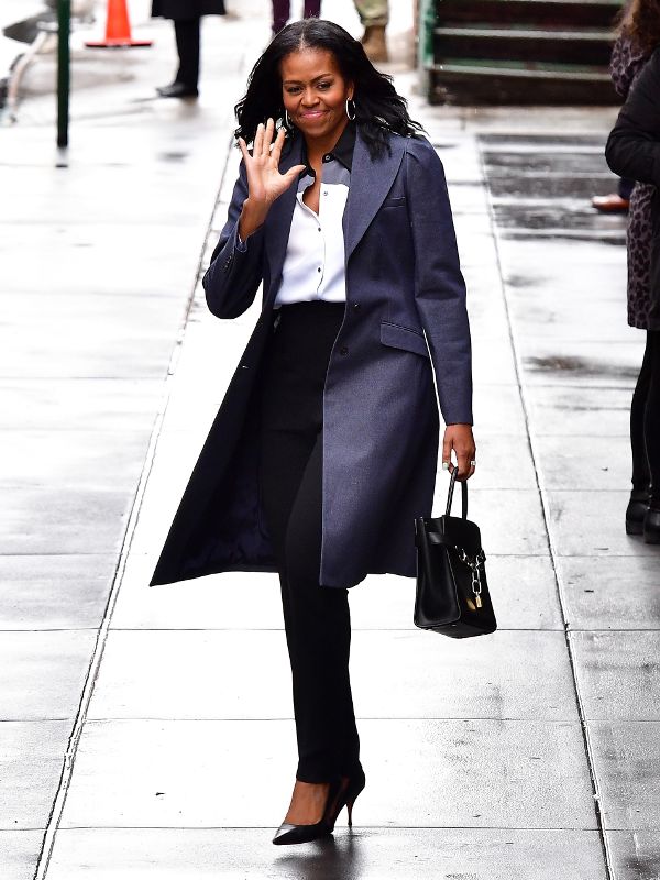 Michelle Obama chứng minh rằng việc đầu tư vào những trang phục may đo cao cấp, phù hợp với vóc dáng cơ thể không bao giờ là dư thừa. Chiếc quần âu vừa vặn, áo sơ mi lụa và áo choàng trơn màu trong bức ảnh này đã tôn lên triệt để vẻ nhã nhặn, ôn hòa của Đệ nhất Phu nhân nhưng vẫn khiến bà tỏa sáng
