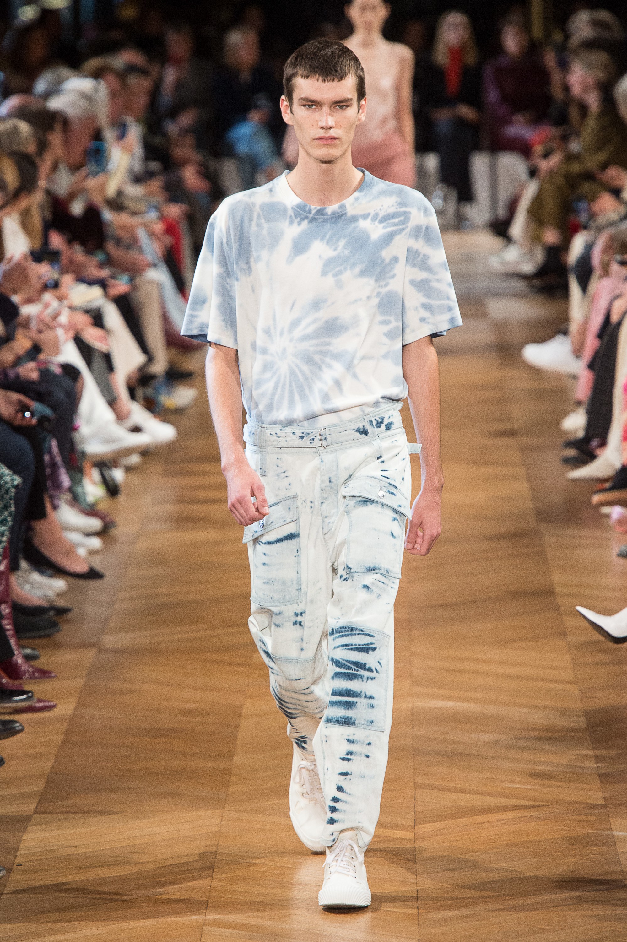 Phong cách nhuộm loang đã có từ rất lâu, thế nhưng trong năm 2019, kiểu mốt này đã trở lại và khoác lên mình một làn gió mới, trẻ trung, thời thượng hơn. Không còn mang phong cách hippie hay màu mè rực rỡ, các sáng tạo của mùa xuân năm nay trải dàn trên chất liệu denim, jeans… và được phối theo cùng một tông màu wax nhạt, sáng… nhưng nổi bật vô cùng.