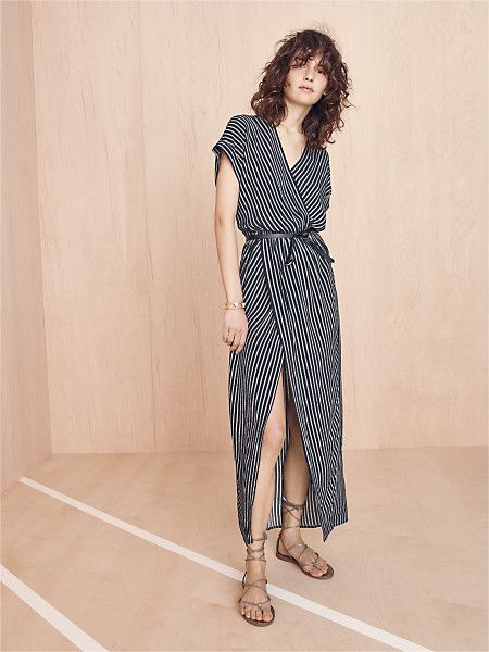 Váy quấn họa tiết kẻ sọc không những giúp cơ thể thon gọn mà còn khiến các quý cô cao hơn.