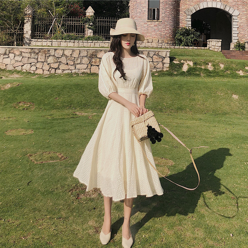Váy thắt eo còn phân chia 3 vòng rất rõ ràng, tôn dáng người mặc.