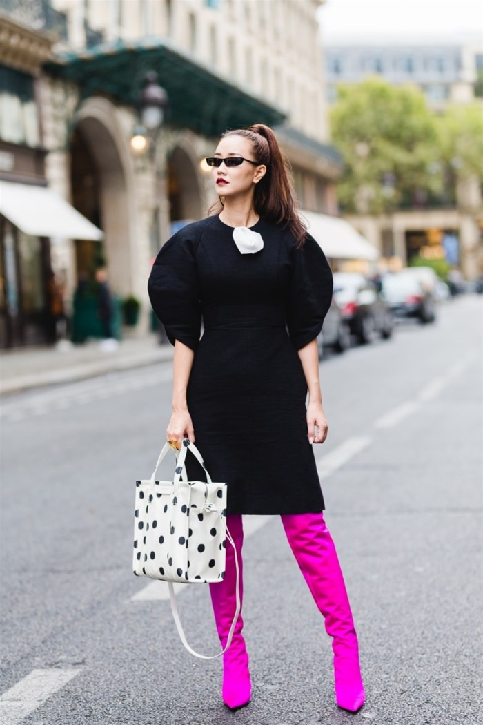 Đây chính là đôi bốt gây sóng gió nhiều nhất năm qua. Rất nhiều người đẹp diện nó nhưng không phải ai cũng hợp. Jolie Nguyễn là một mỹ nhân diện bốt Balenciaga cao quá gối cực chuẩn.