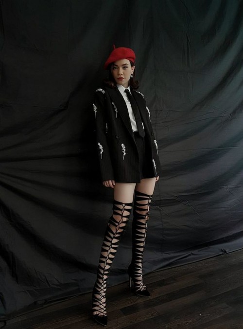 … và Tú Anh mix cả cây đen với đôi giày này.