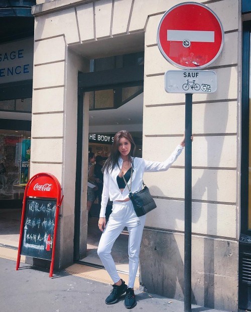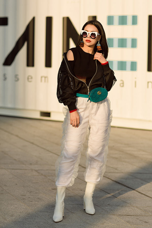 Cô nàng Hạ Vi diện trang phục basic siêu đơn giản nhưng phụ kiện lại cực hot.