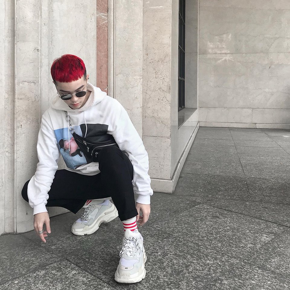 Lại là “gương mặt thân quen” Kelbin Lei mix đen trắng cực chất với đôi giày này.