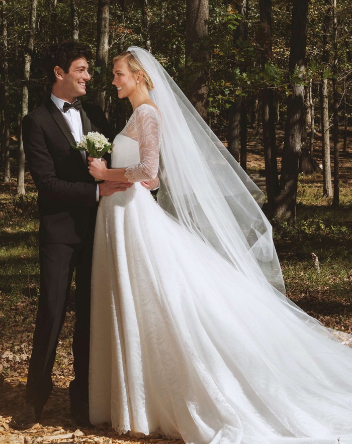Siêu mẫu Karlie Kloss đã lựa chọn mẫu váy của Dior để tỏa sáng. Mẫu váy với điểm nhấn ren gợi cảm cùng chất liệu cao cấp giúp cô trở thành một trong những cô dâu đẹp nhất năm 2018.