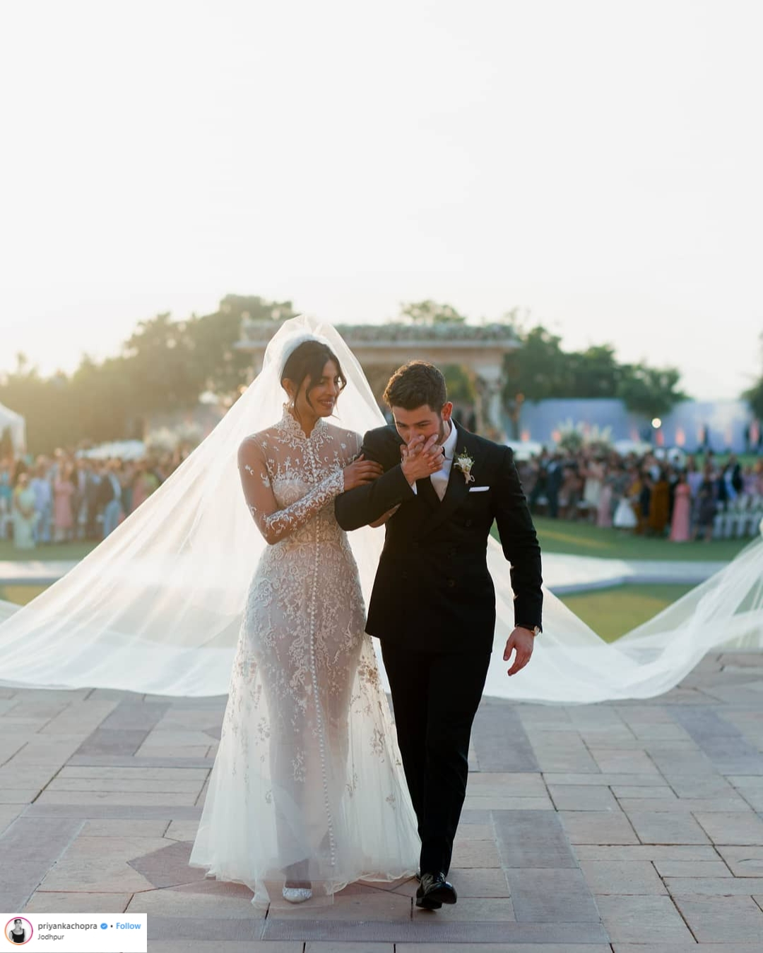Cựu Hoa hậu thế giới Priyanka Chopra đã có đám cưới xa hoa khiến nhiều người trầm trồ. Trong ngày cưới, cô lựa chọn thiết kế của Ralph Lauren. Mẫu váy được thực hiện tỉ mỉ, tốn tới 1.826 giờ để hoàn thiện. Váy của cô dâu xinh đẹp này có điểm nhấn khăn voan dài tới 23 mét.