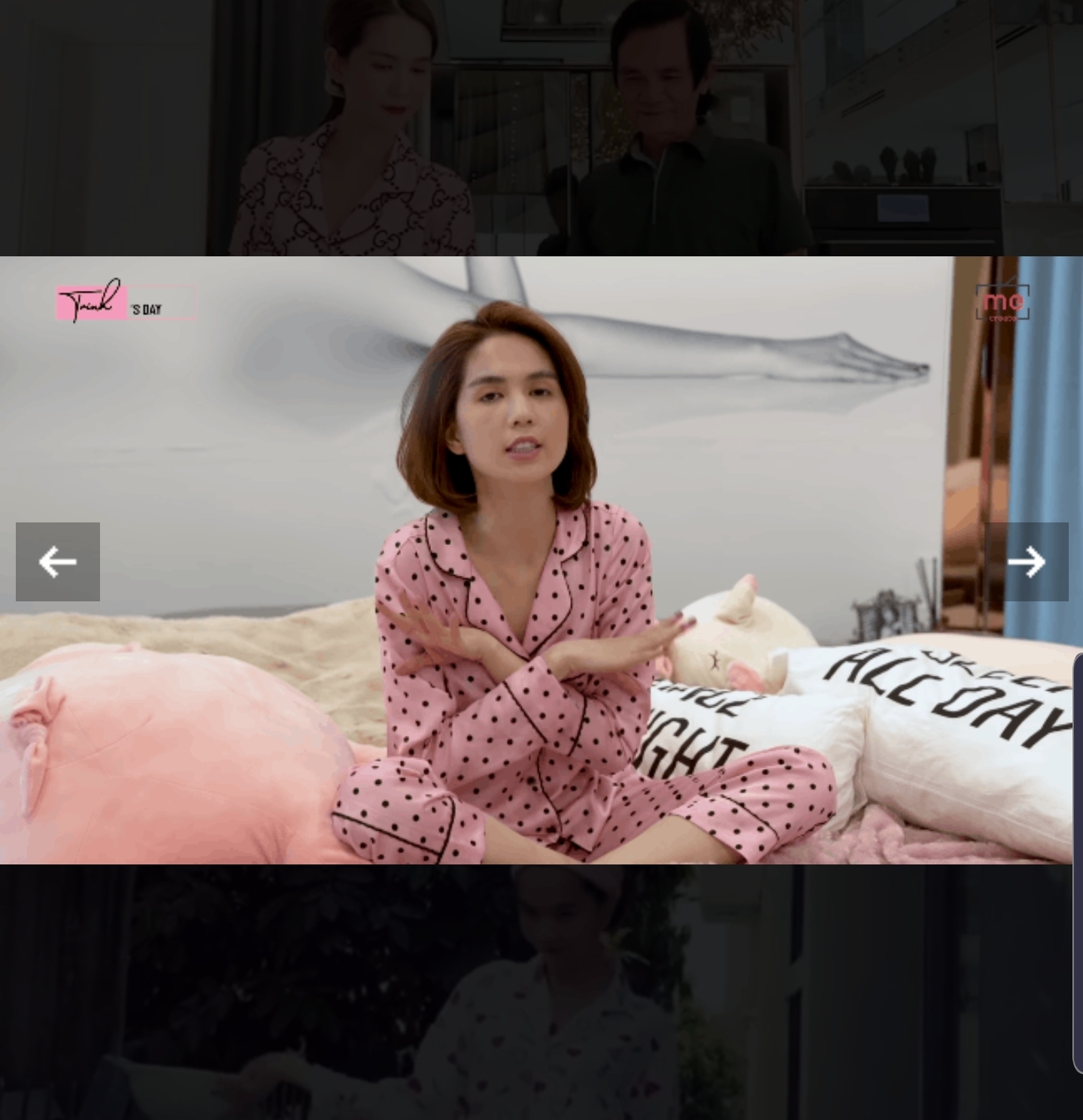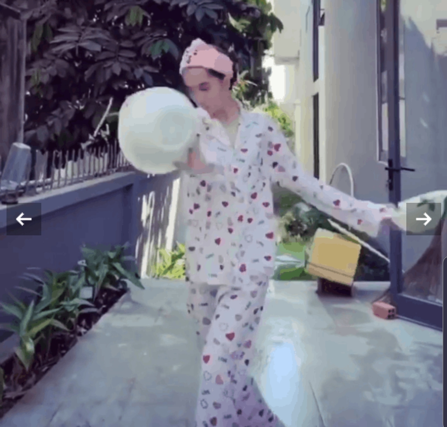 Lần khác, Ngọc Trinh chọn cho mình bộ pijama chất liệu phi lụa, in họa tiết chấm bi nhí nhảnh, đáng yêu.