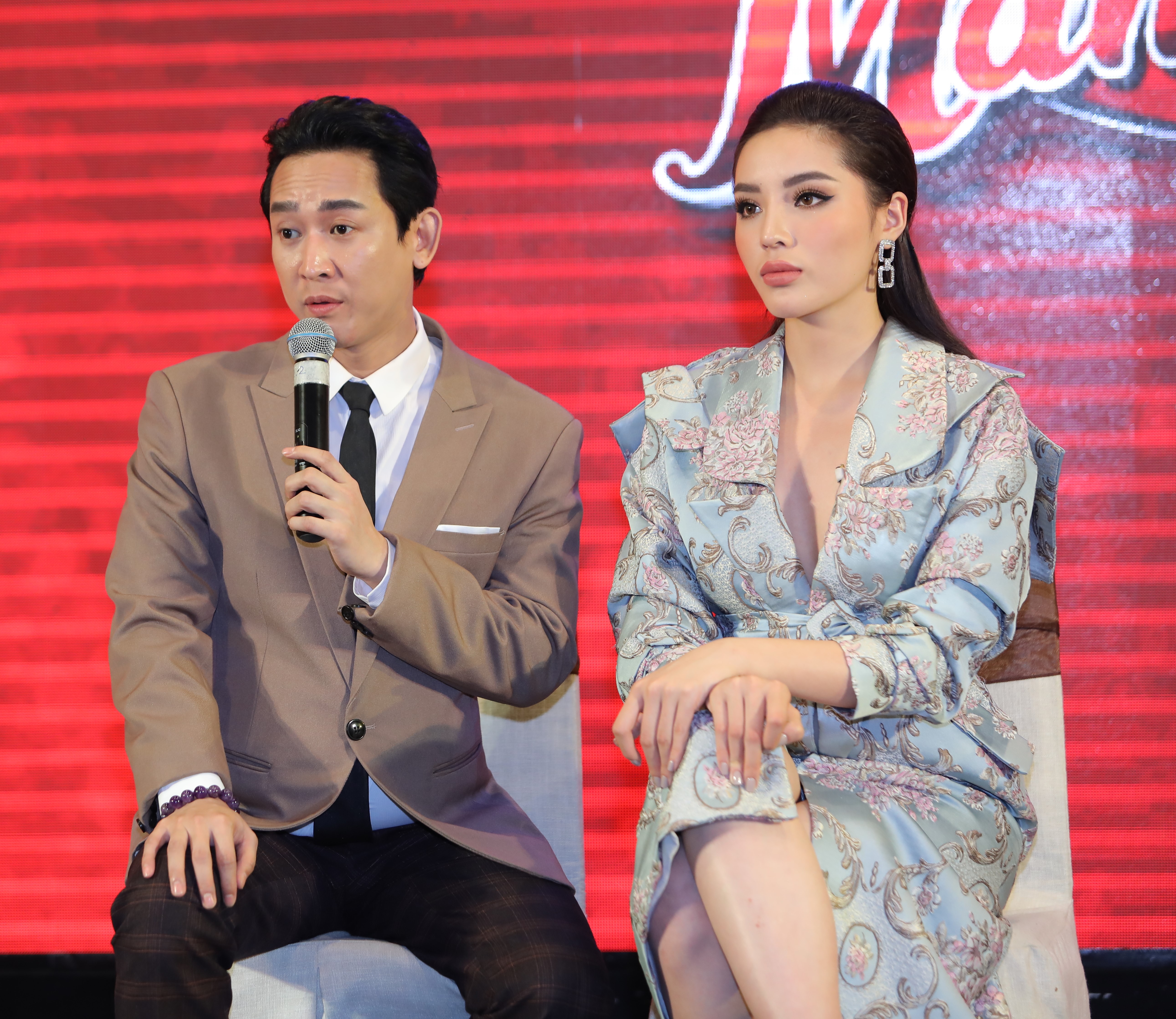 Kỳ Duyên khoác tay Hứa Vĩ Văn thân mật tại họp báo.
