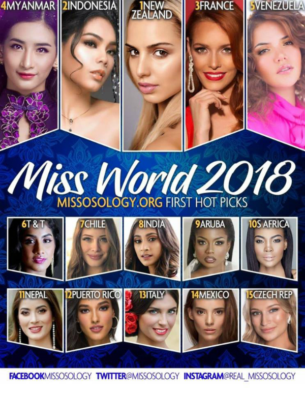 Dù còn gần 2 tháng nữa cuộc thi mới diễn ra nhưng không khí trước thềm “cuộc đua” nhan sắc nóng lên từng ngày. Mới đây, chuyên trang đánh giá sắc đẹp uy tín Missosology vừa đưa ra bảng dự đoán đầu tiên dựa trên thông tin về những đại diện tham gia Miss World 2018.