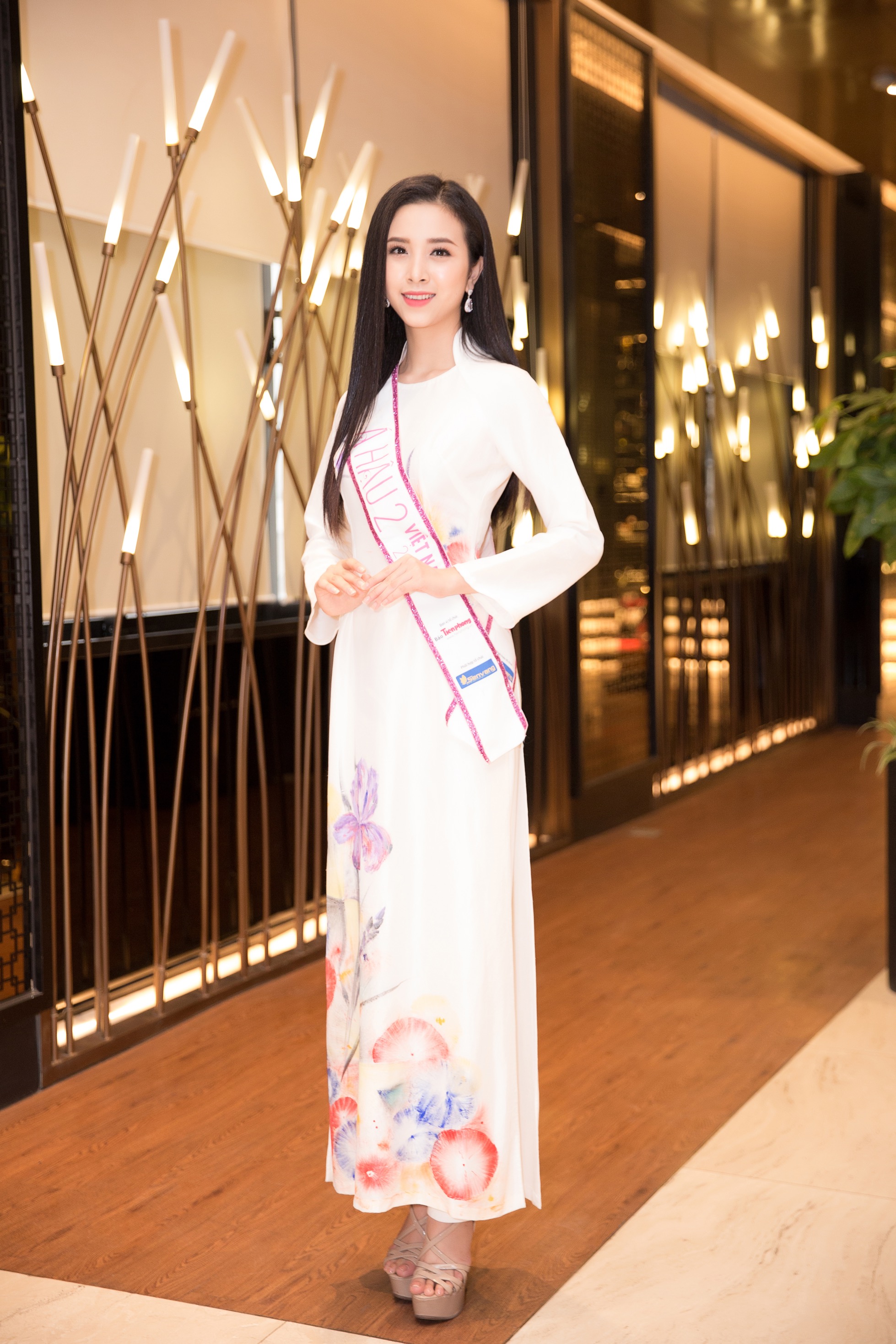Và á hậu 2 đều hết sức duyên dáng cùng màu trắng tinh khôi, vẽ những đóa hoa nhẹ nhàng, bay bổng.