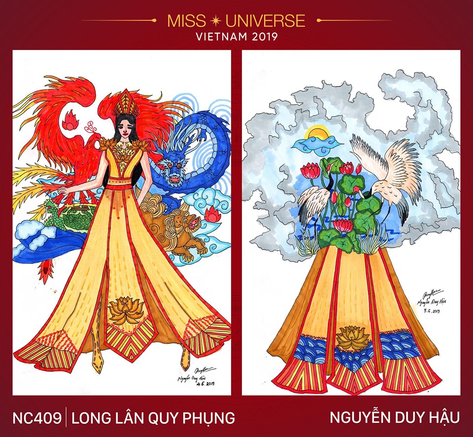 Hiện ban tổ chức sẽ tiếp tục nhận bài dự thi thiết kế quốc phục đến hết ngày 15/6. Top 15 bài thi được chấm điểm và bình chọn cao nhất sẽ được thuyết trình trước ban giám khảo và có cơ hội trở thành quốc phục của Việt Nam tại đấu trường nhan sắc Miss Universe 2019. Một số mẫu thiết kế ấn tượng được lên sóng trong chặng đường cuối: