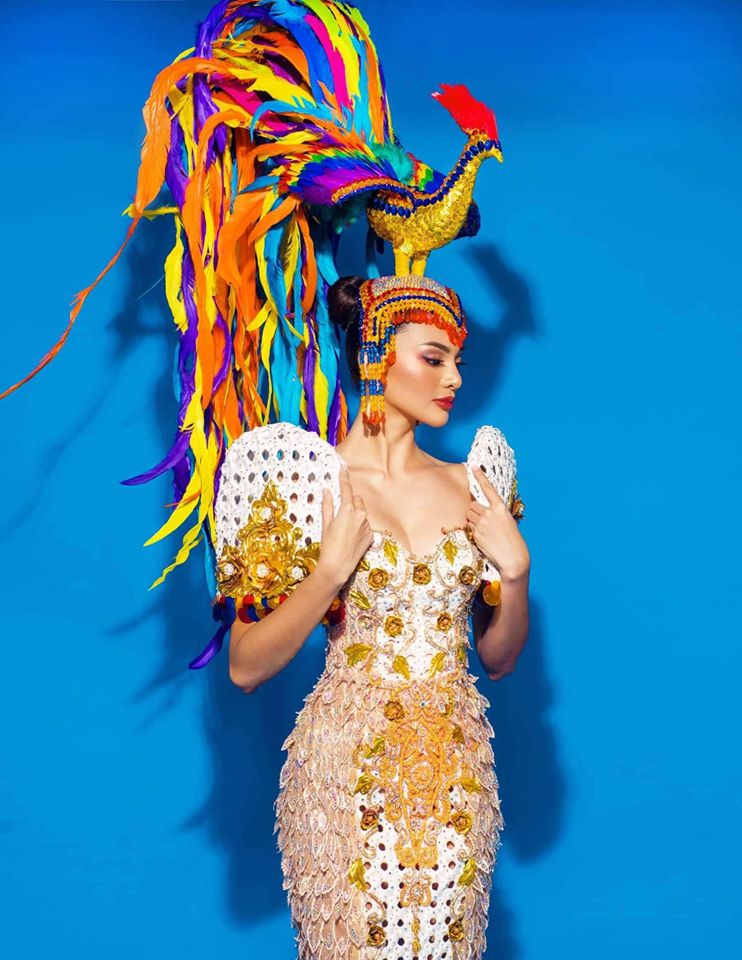 Bộ trang phục của Philippines khiến nhiều người liên tưởng tới “Phi Thúy Sơn - Điểu Tinh đoạt Công chúa” của Á hậu Thúy An vì có cùng ý tưởng đội chim trên đầu.