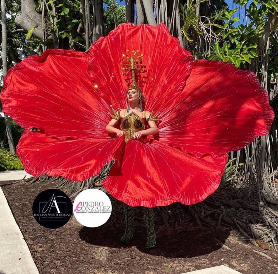 Đại diện Puerto Rico quyết chơi nổi với bộ trang phục đỏ rực lấy cảm hứng từ một đóa hoa dâm bụt.