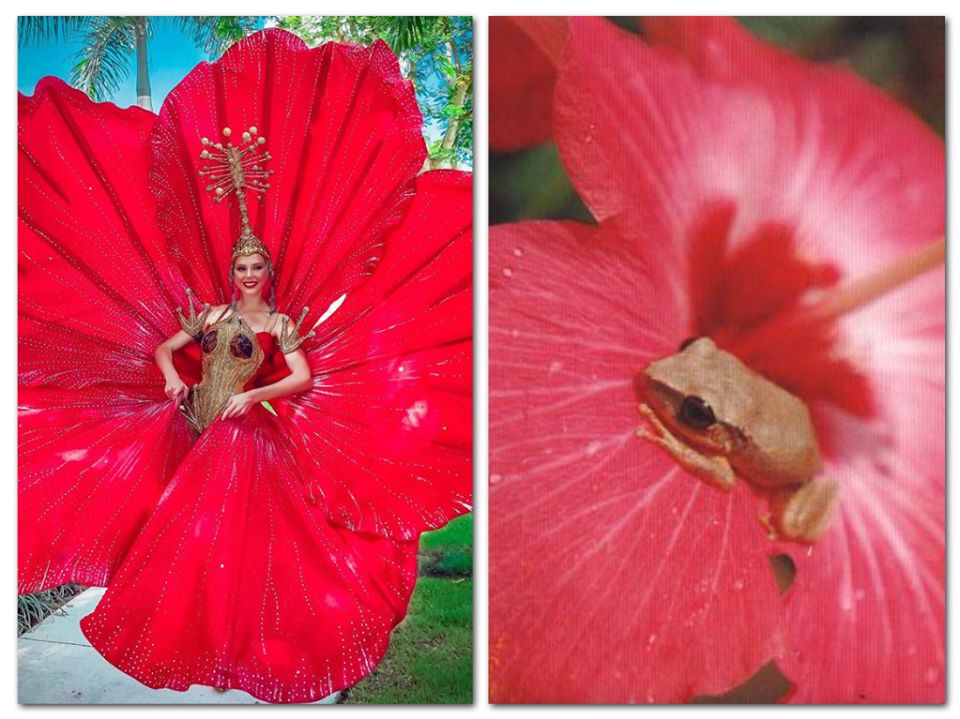 Ý tưởng chính của bộ trang phục là hình ảnh loài ếch Coquí ngủ trong hoa dâm bụt rừng ở quốc gia cô.
