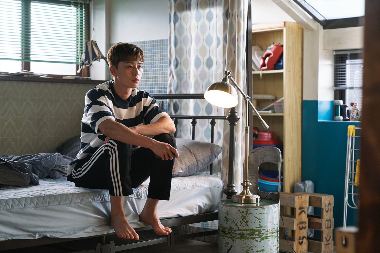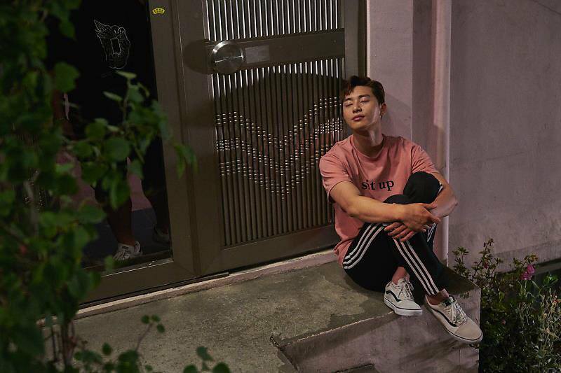 Hình ảnh quen thuộc của Park Seo Joon với chiếc quần sọc thể thao trong bộ phim Fight For My Way - Đời tôi hạng bét.