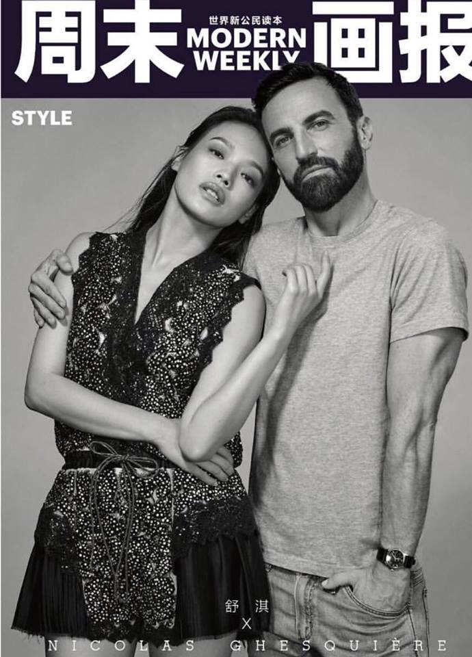 Hiếm hoi có một nữ diễn viên Châu Á nào có vinh hạnh được chụp hình thời trang cùng với môt nhà giám đốc sáng tạo tiếng tăm của làng thời trang thế giới như Thư Kỳ và NTK kiêm giám đốc sáng tạo Nicholas Ghesquière.