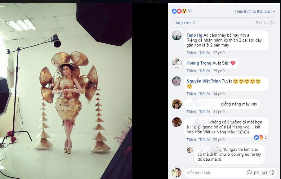Đây không phải là lần đầu tiên “Nàng Mây” bị sao chép ý tưởng. Trước đó trang phục dân tộc của Á khôi Liên Phương tại Hoa hậu Đại sứ Du lịch 2017 cũng bị tố đạo nhái từ “Nàng Mây”.