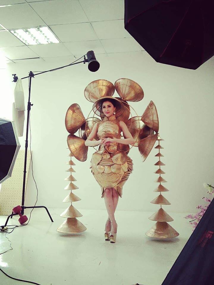 Bộ trang phục của Lệ Hằng do thí sinh Thái Trung Tín thiết kế. Với ý tưởng “cái đẹp bắt nguồn từ sự giản dị”, bộ trang phục được làm từ những chất liệu dân gian, quen thuộc.