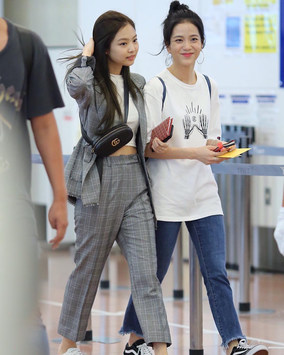 Hễ xuất hiện là Jennie nổi bần bật nhờ phong cách thời trang sành điệu. Nữ rapper nhà Black Pink hút hồn fan khi diện cả cây menswear chất lừ, nhấn nhá bằng túi Fanny Bag siêu hịn từ Gucci.