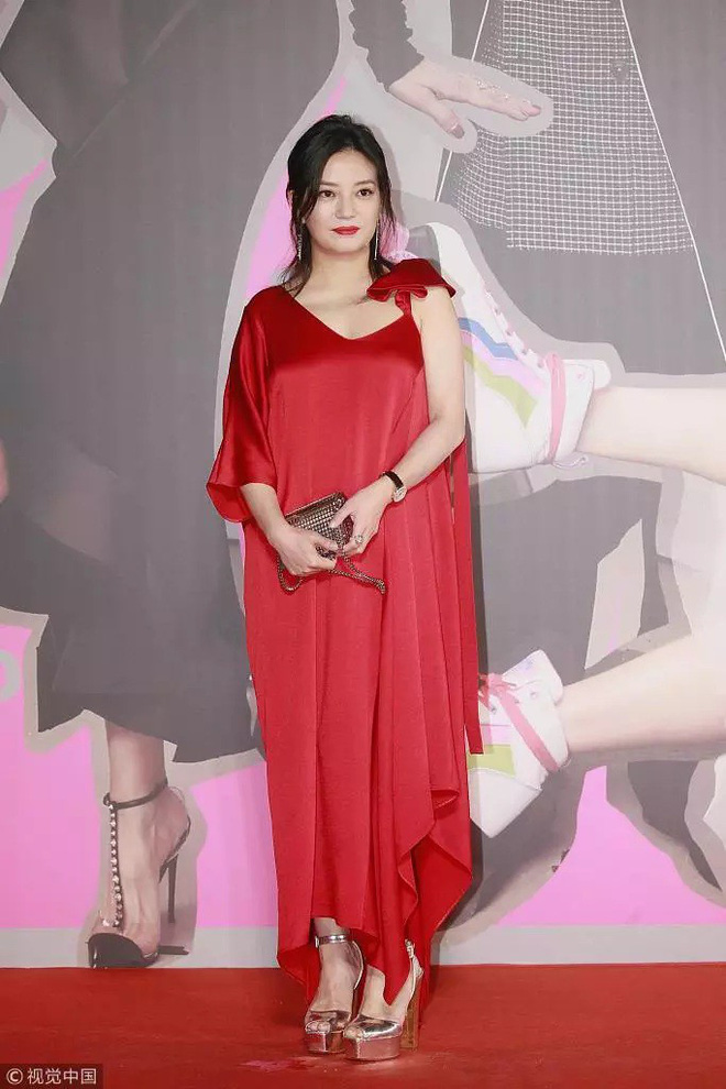Mẫu váy đỏ, xòe rộng, dài chấm gót từng khiến Triệu Vy bị như đang mang bầu tháng cuối.