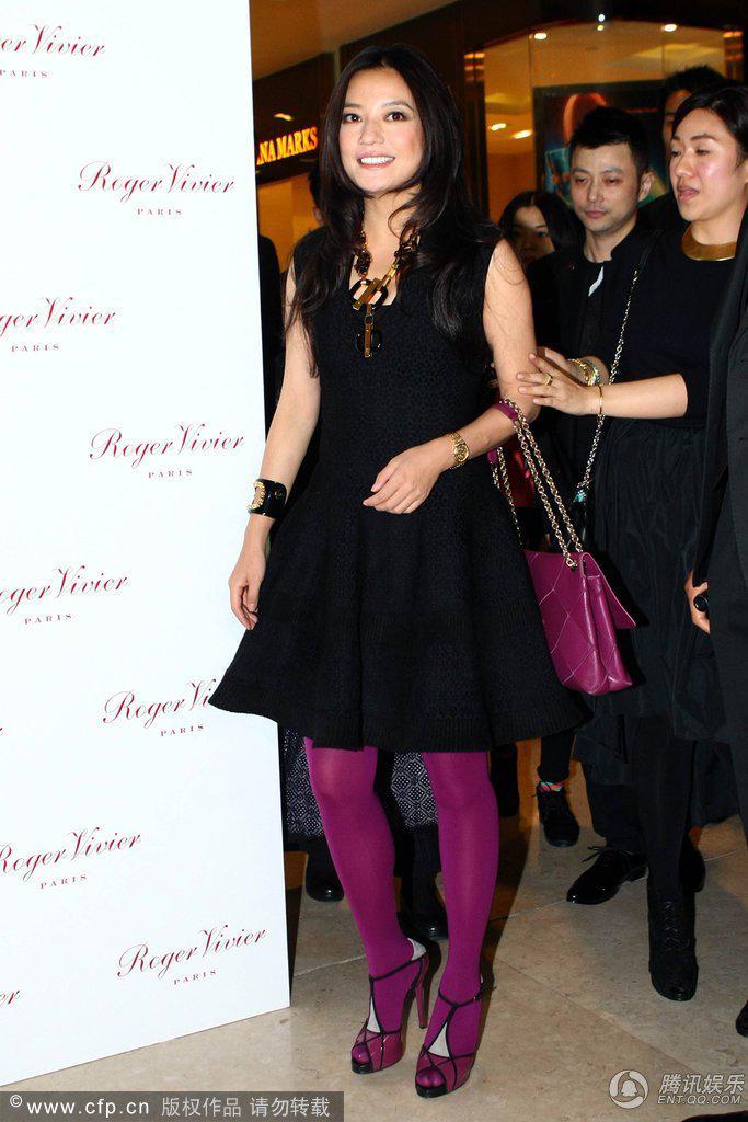 Phải chăng nữ diễn viên Hoàn Châu Cách Cách muốn chọn đôi tất tím này cho đồng bộ với mẫu túi?