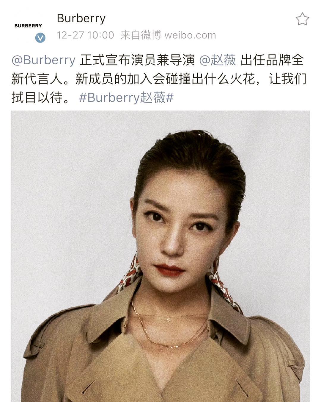 Triệu Vy trở thành gương mặt đại diện cho khu vực Châu Á của thương hiệu Burberry