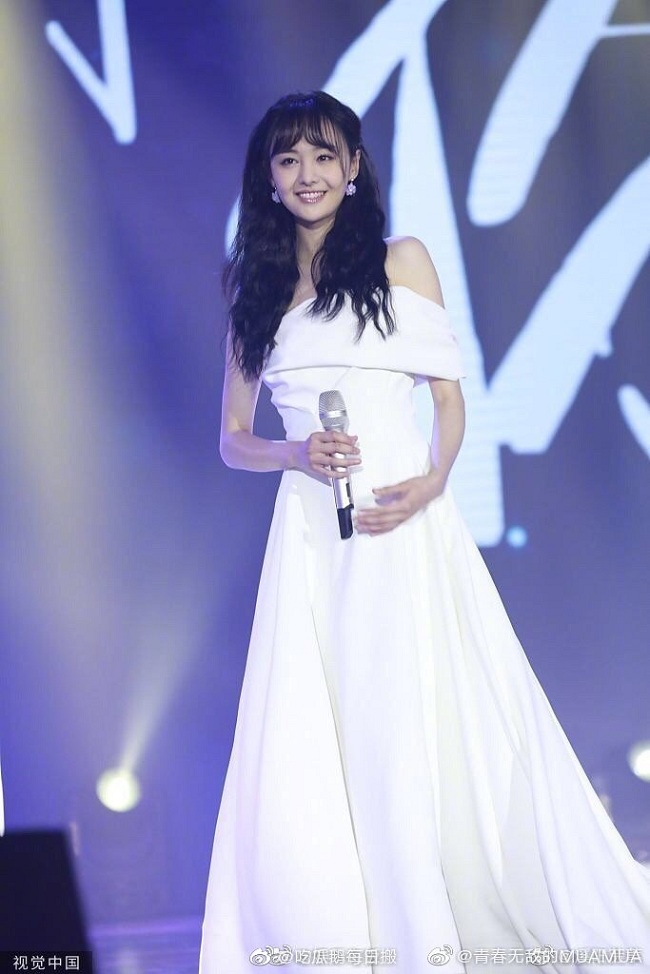 Tưởng chừng chiếc váy trắng sẽ phần nào tôn lên nhan sắc của Trịnh Sảng nhưng không thiết kế trễ vai của bộ váy đã lộ khuyết điểm là bờ vai xương xẩu như bộ xương