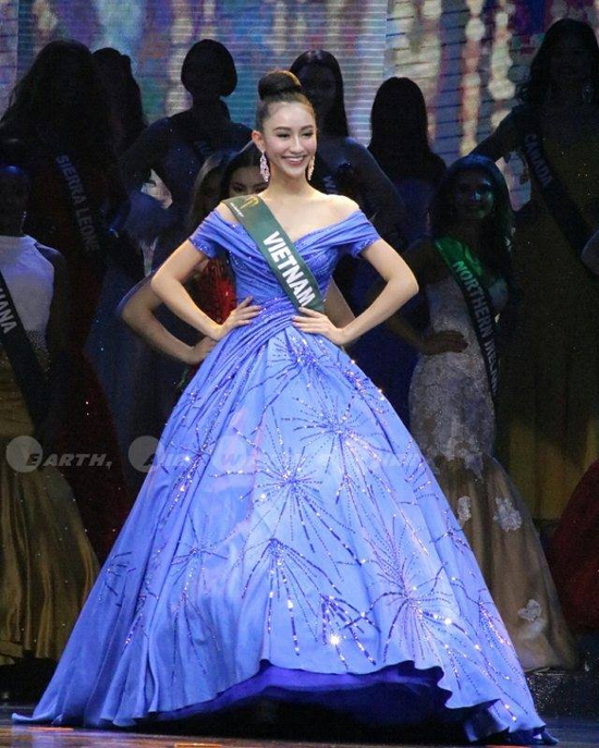 Ngay sau đó chiếc váy được top 16 Hoa hậu Trái đất diện trên thảm đỏ lễ trao giải “Người phụ nữ của năm”, diễn ra vào tháng 2/2018. Cả hai lần diện là hai lần cô chinh phục người xem bởi sự lộng lẫy không chê vào đâu được.