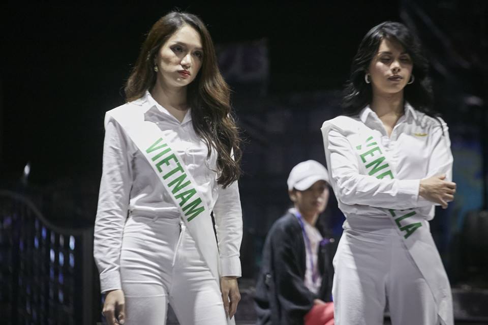 Trong khi đó đại diện Việt Nam được khen ngợi khi cô vẫn giữ vững phong độ. Hương Giang hoàn toàn lấn át trước đại diện của Venezuela. Trong buổi tổng duyệt các thí sinh mặc đồng phục trắng vô cùng nổi bật.
