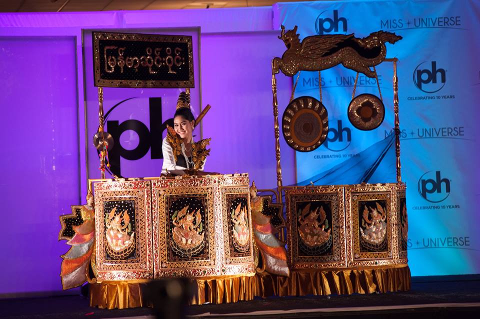 Hoa hậu Myanmar Zun Than Sin mang trên mình một bộ quốc phục lạ mắt với kích thước khổng lồ, cô để lại nhiều ấn tượng sau phần trình diễn của mình. Đất nước Đông Nam Á này đã từng chiến thắng giải quốc phục vào năm 2016 cũng với một thiết kế mang đậm văn hóa Miến Điện.