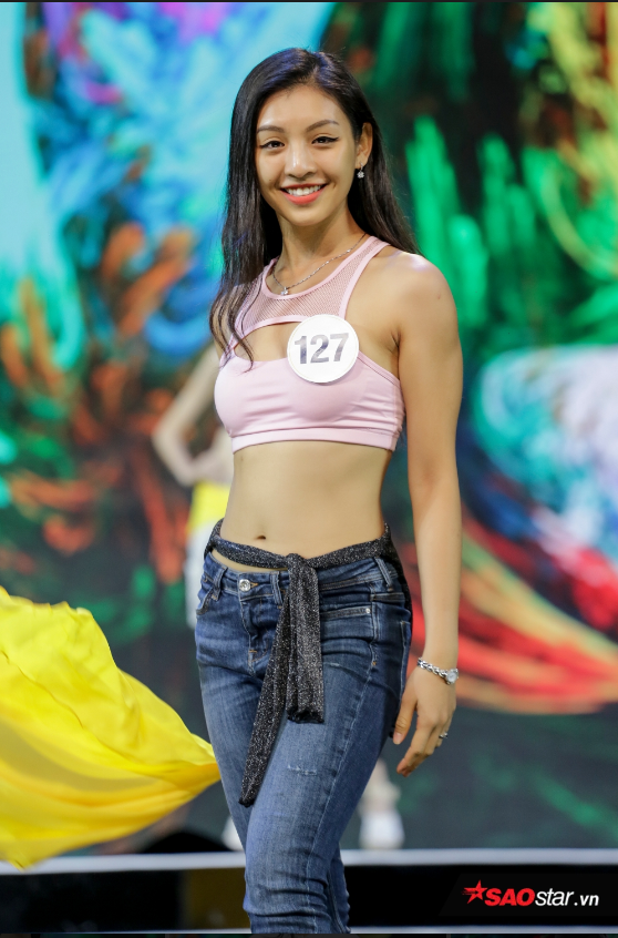Tuy hơi thiếu săn chắc nhưng thí sinh này cũng sở hữu vòng eo khá ổn…